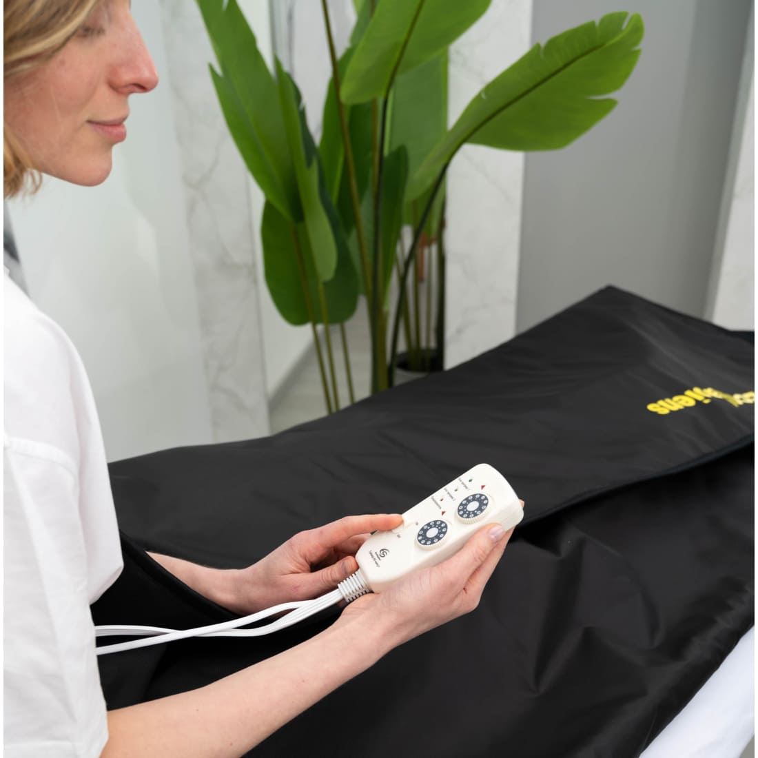 В косметологическом кабинете одеяло можно использовать для лёгкого прогрева после массажа и усиления эффекта обёртывания. Благодаря 2 зонному прогреву можно одновременно стимулировать разными температурами зону ног и зону живота и грудной клетки.